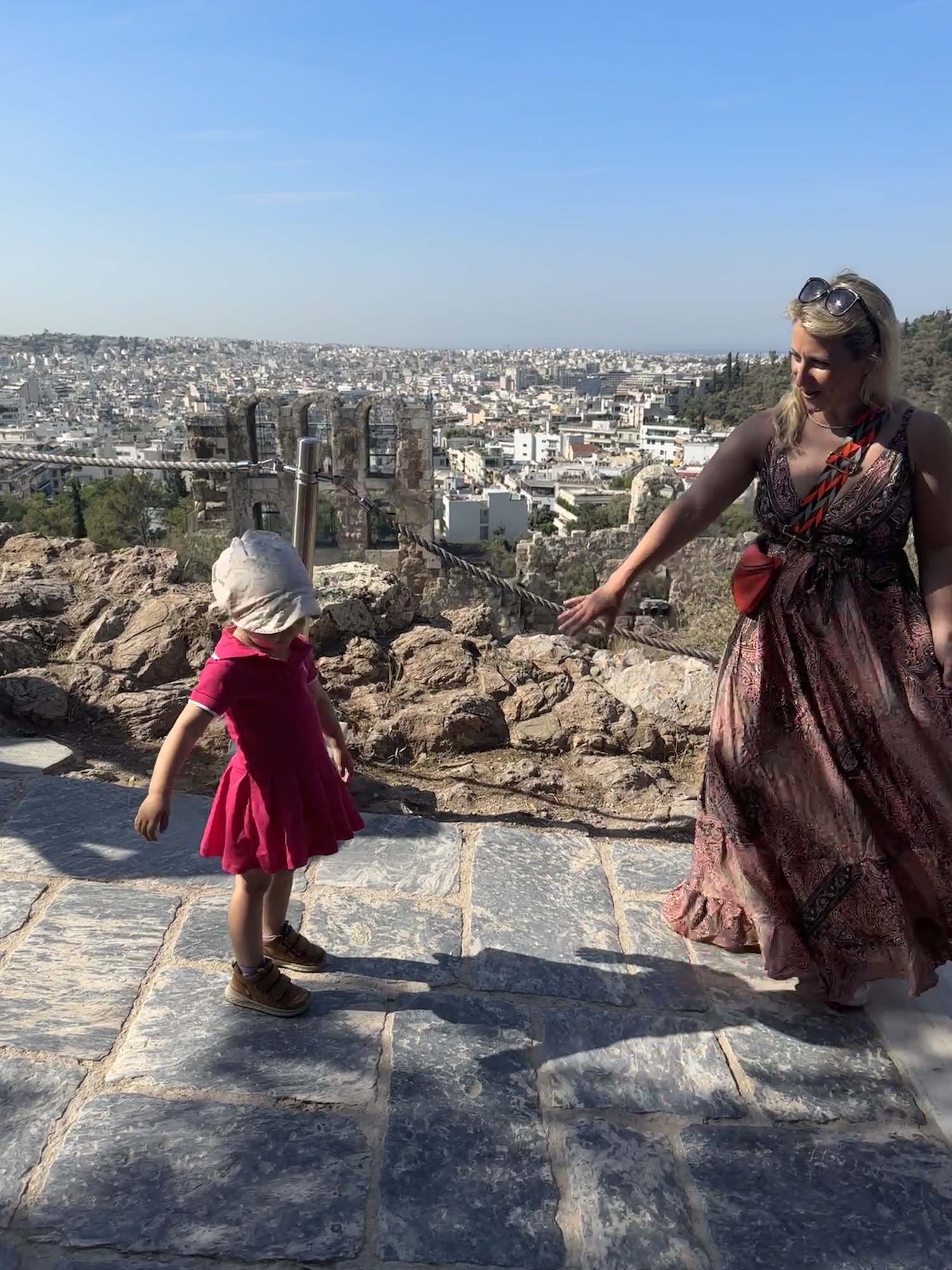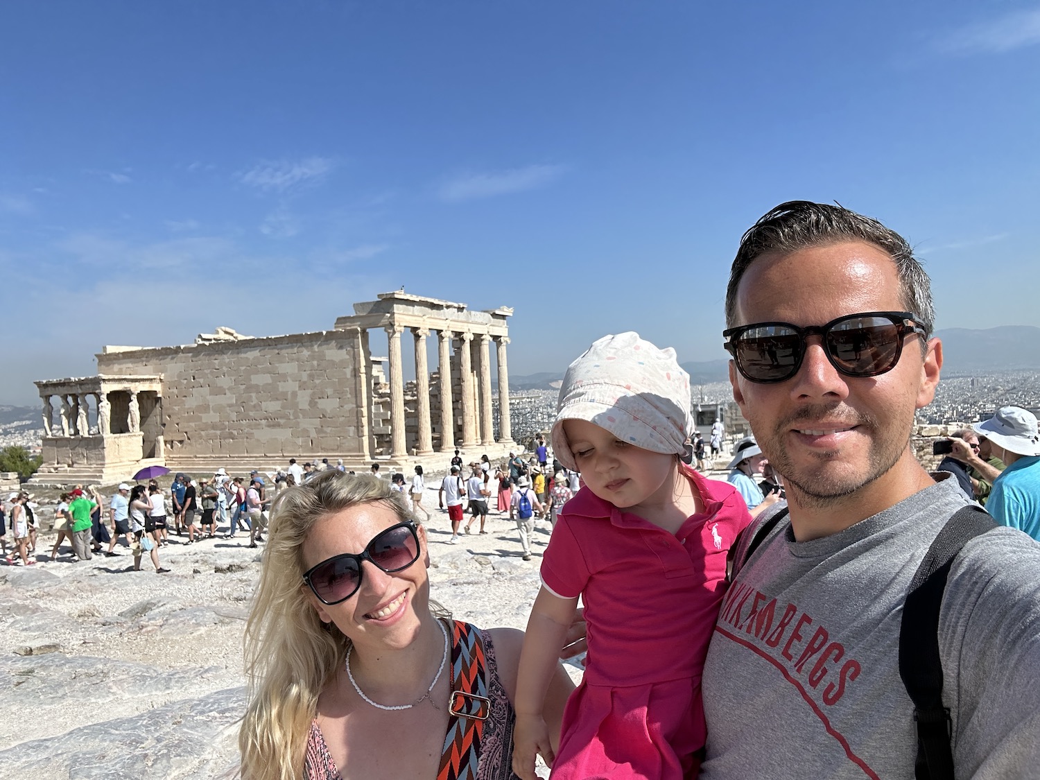 Zweiter Tag Athen. Vor dem Frühstück starteten wir zu Fuß zum Zug, um in die City zu kommen. Im Zug gab es ein paar Snacks und Kaffee. Gestern sahen wir sie schon die Menschenmassen um die Akropolis herum – wir dachten, es ist morgens besser….Nach 35 Minuten anstehen, sind wir am Eingang angekommen. Es gibt einen Weg nach oben und einen Weg nach unten mit Absperrungen – blöd nur für uns, dass die meisten Menschen nicht verstehen wie das mit dem „Gehen“ funktioniert. OK, hey es ist die Akropolis also schnell rauf da, kurz so gut es geht ein paar Steine anschauen und dann schnell wieder runter. Mit Kind duften wir einen schnelleren, ebenfalls abgesperrten Weg nutzen und waren dank der netten Security wirklich schnell unten.