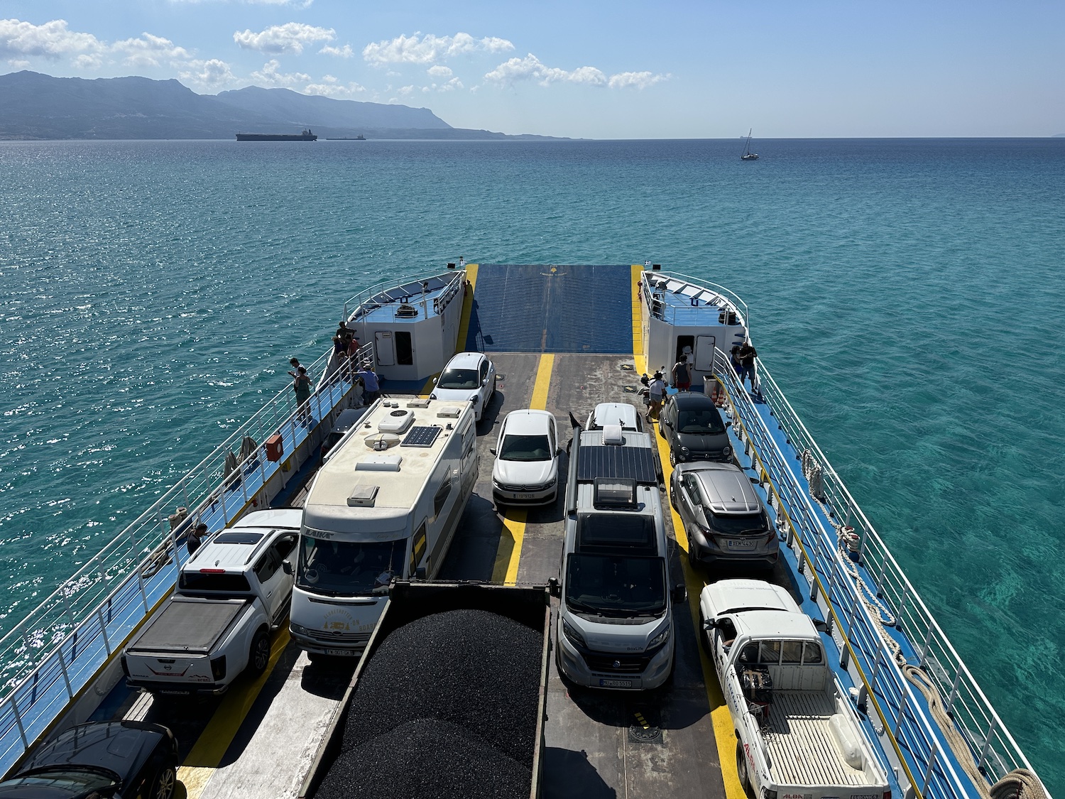 Bye Bye Kefalonia – mit der Fähre setzen wir von Fiskardo auf die Insel Lefkada über.