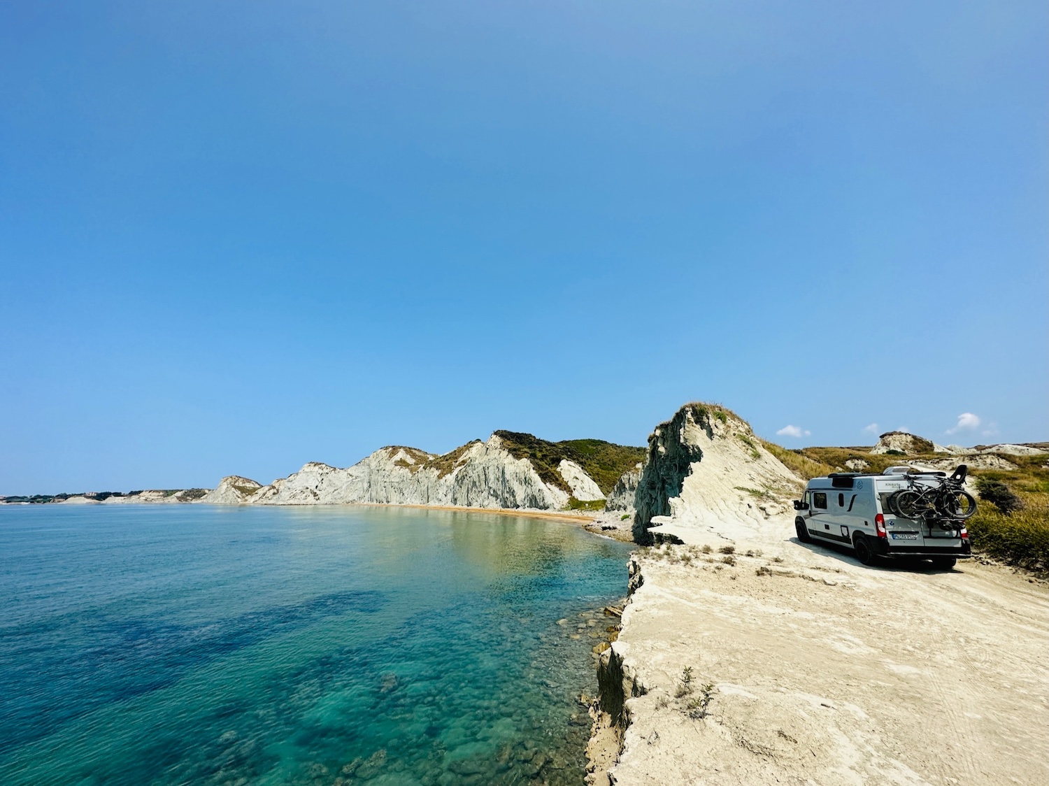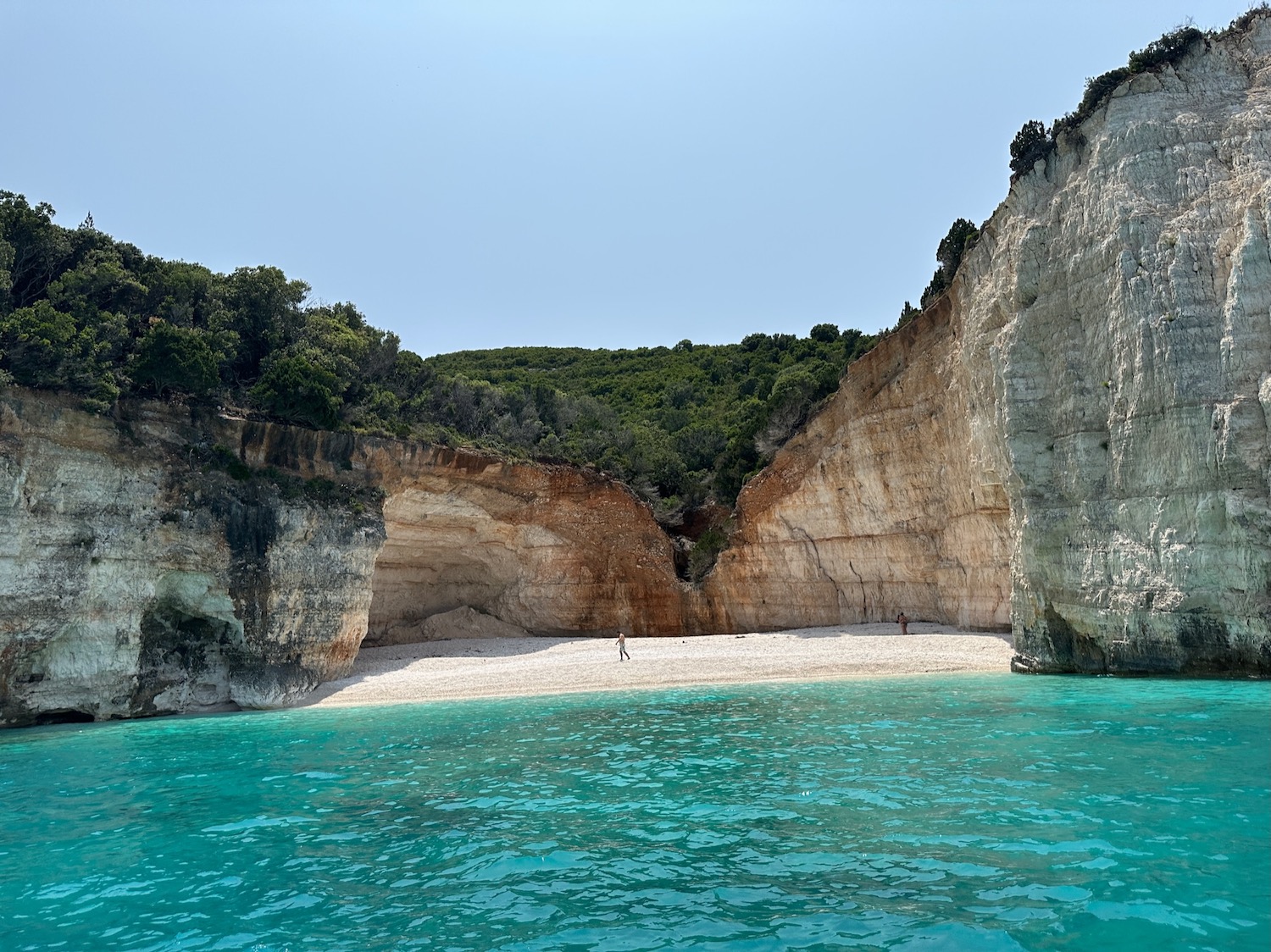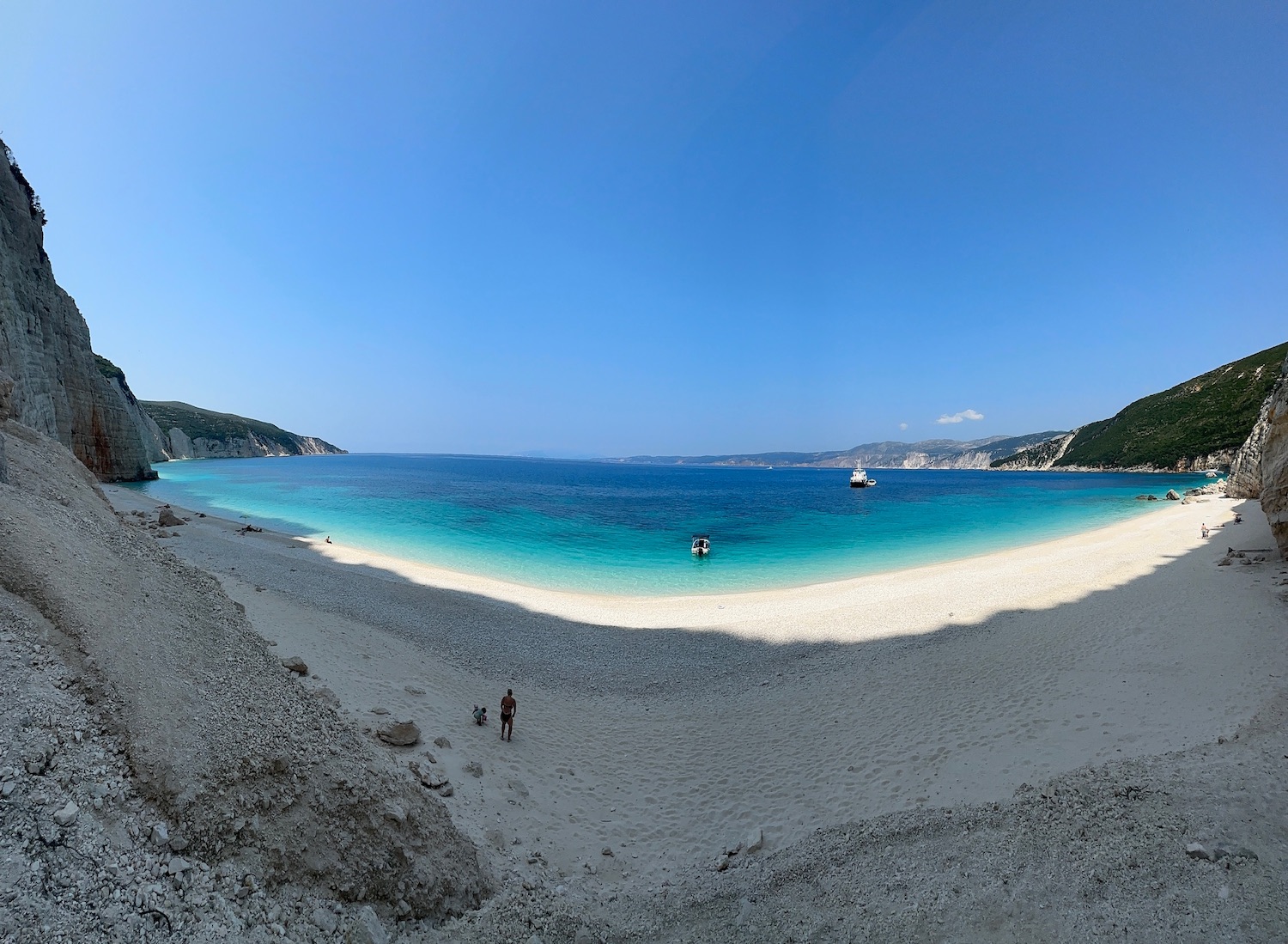 Boa, hier auf Kefalonia gibts so wunderschöne Buchten. Welche die schönste ist? Keine Ahnung – sind alle schön! Am besten erkundet man Kefalonia nicht nur mit dem Van, sondern auch mit einem Boot oder zu Fuß. Viele schöne Strände erreicht man am besten mit einer Wanderung oder über dem Wasserweg. Chris und ich haben beide einen Motorbootführerschein, sodass wir überall ein Boot ausleihen können. Wer keinen Schein hat, hat hier aber auch meist kein Problem und die PS-Anzahl ist völlig ausreichend, um die umliegenden Buchten zu erkunden. An vielen Orten gibt es auch Taxi-Speedboote, die an wirklich schöne Buchten anlegen. Mit eigenem Boot ist es unser Meinung nach noch besser, da man so wie wir an Buchten kommt, wo niemand ist. Na klar haben wir ein paar davon besucht. Traumhaft.
