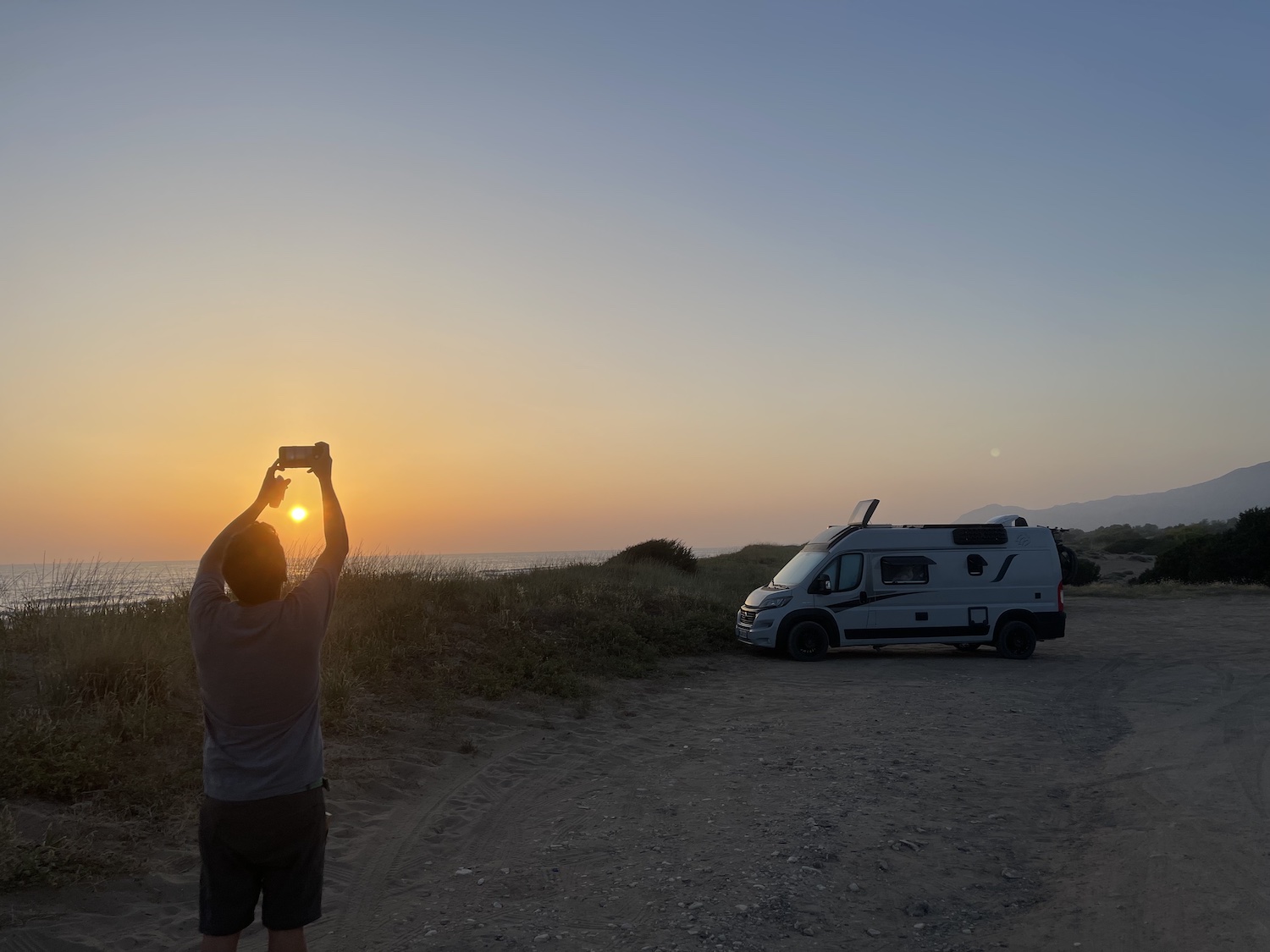 Kurz nachdem wir wieder am Campingplatz angekommen sind, fing es kurz aber heftig an zu gewittern. Als wir uns wieder nach draußen gewagt haben, trafen wir Camper-Nachbarn, die neben uns in Istanbul standen. Ein älteres spanischen Ehepaar. Tere freute sich sehr, uns nach fast zwei Monaten zu sehen und wir tranken einen „Spanischen-Cafe“ zusammen. Sie trinken Espresso mit Schuss – auch nicht schlecht. Zwei Stunden saßen wir zusammen, ich habe es schon mal erwähnt – sie sprechen kein Englisch und wir kein Spanisch – mit Händen und Füßen und mit einer Übersetzer-App funktioniert eine Unterhaltung trotzdem sehr gut. Tere gab uns ihre Kontaktdaten – wer weiß – vielleicht besuchen wir sie ja mal in ihrer Heimatstadt Oviedo.