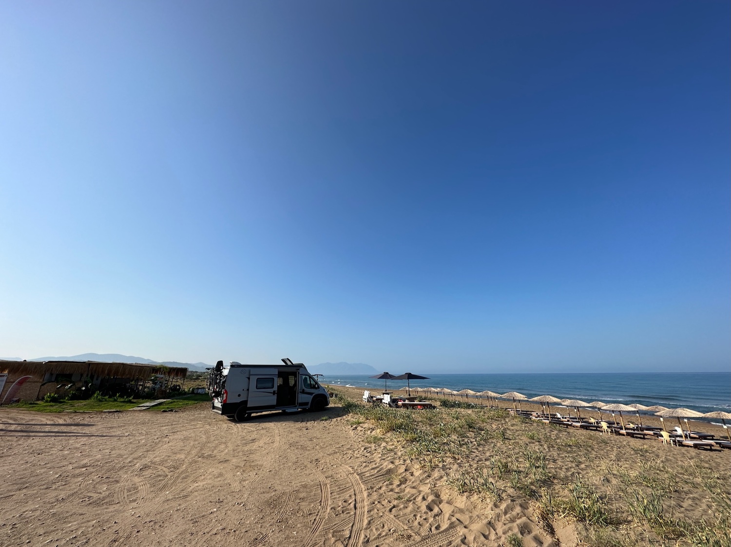 Durch Zufall kamen wir an diesen Wohlfühlort. Es hat ein wenig geregnet und unser „eigentlicher“ Wildcamping-Stellplatz hat uns nicht so gut gefallen, also fuhren wir an die nächste Beach Bar die uns Google anzeigte.