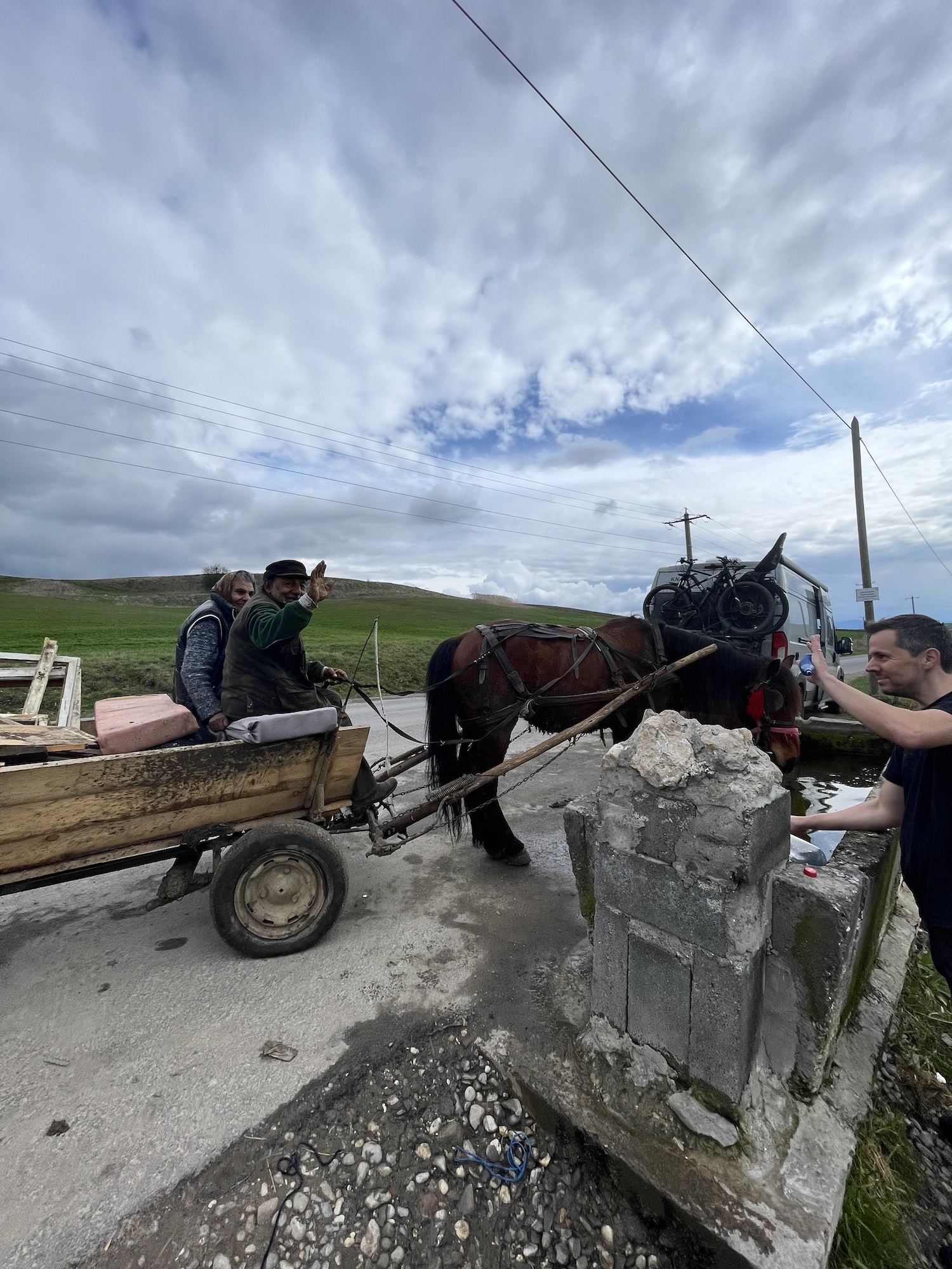 Also fuhren wir weiter über Felder, eine mehr oder weniger stabile Holzbrücke und kleinere Dörfer zum nächsten Brunnen und damit Quelle Nr. 2. Das Wasser war perfekt. Der Brunnen war beliebt und viele Leute füllten hier ihre Wasserflaschen auf und versorgten auch ihre Pferde. Wie dieses nette Ehepaar.