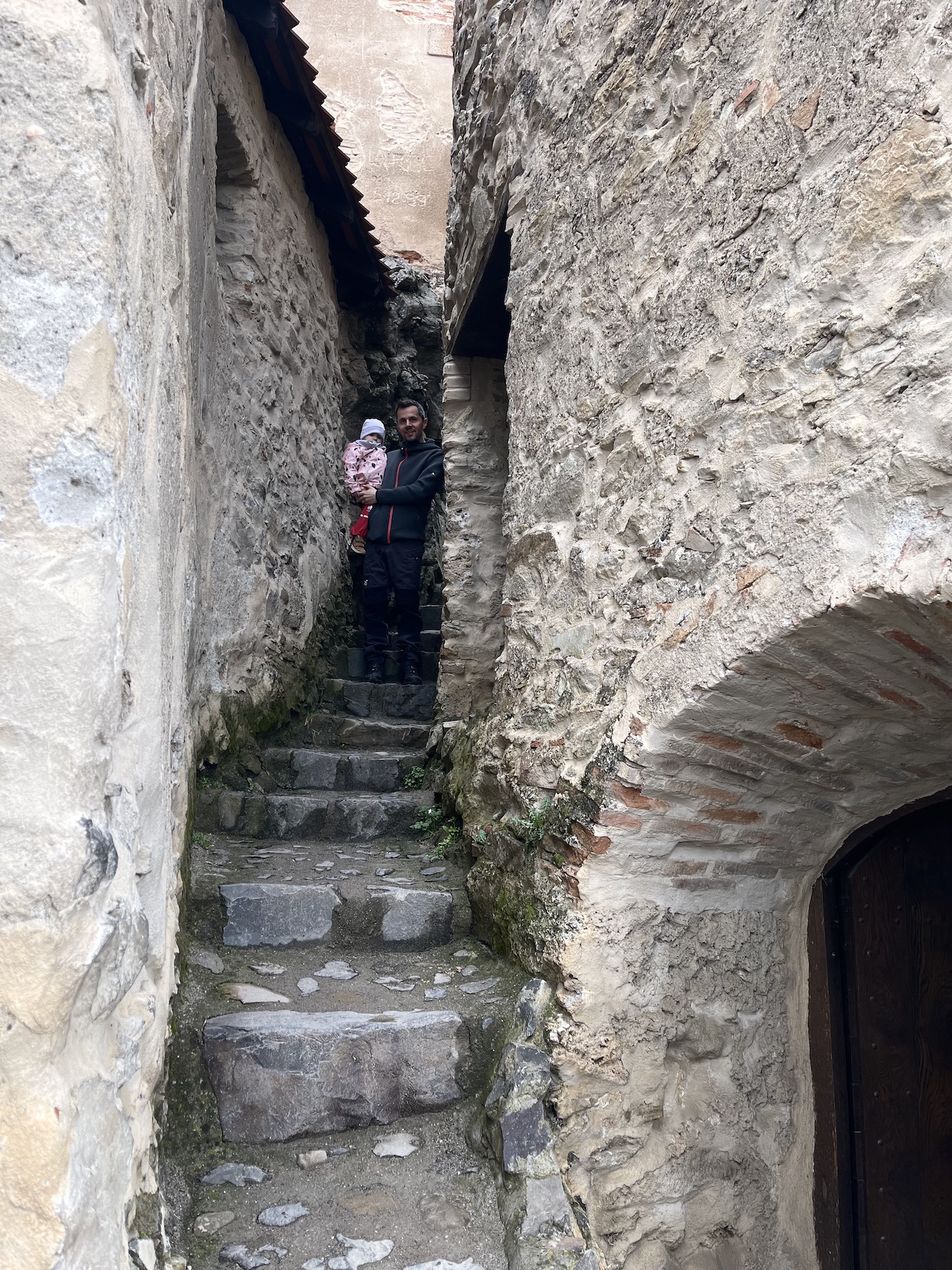 Am nächsten Morgen taute es. Wir packten Fleur in gefühlt 10 Schichten ein und spazierten durch das winterliche Kronstadt. Vorbei am Geburtshaus von Chris Vater, der schwarzen Kirche, der Einkaufsmeile, auf den Hausberg „die Zinne“ und zurück zum Bus.