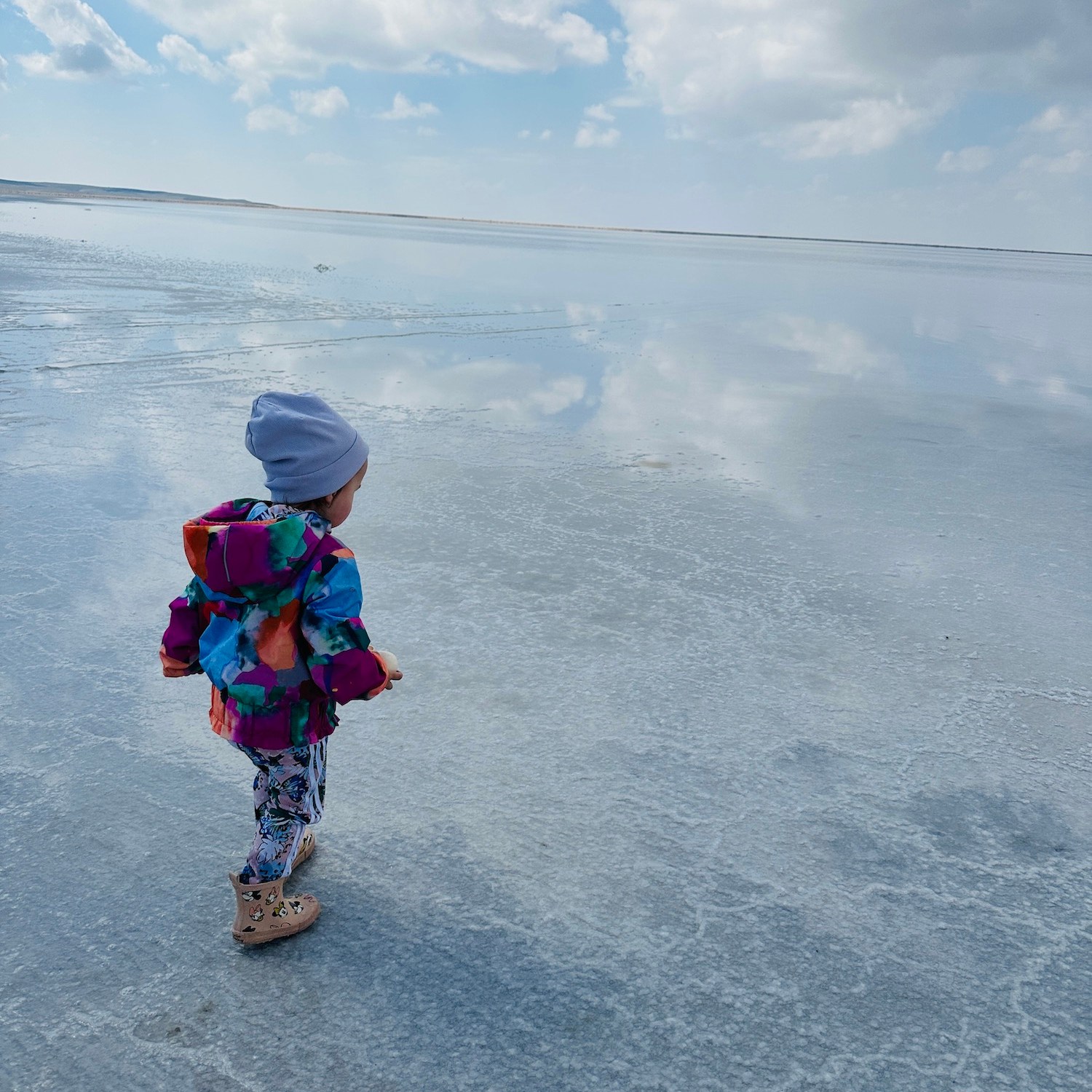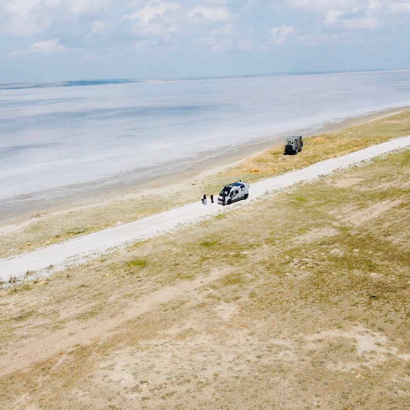 Unser erster Stellplatz, zwischen Salzsee und Wiese. Neben einer Auswanderer-Familie mit einem alten umgebauten Bundeswehr-Transporter. Die Kinder waren 4 und 6 und optimale Spielkameraden. Die zweite Nacht verbrachten wir auf der anderen Seite des See, wo auch der starke Rückgang zu erkennen ist. Unser Stellplatz, ein Camp mit Jurten. Hier konnten wir Wäsche waschen und Wasser auffüllen. Die Besitzer waren sehr nett (Koreaner), hatten aber leider einen bissigen Hund. Chris wurde zweimal von dem Hund gebissen (einmal Wade, einmal Fuß – Gott sei Dank mit Wanderschuh an). Chris hat keine großen Schmerzen, aber trotzdem geht das überhaupt nicht, die Ausrede „er ist noch ein Baby“ – ein ziemlich aggressives Baby. Also, schnell weg da.