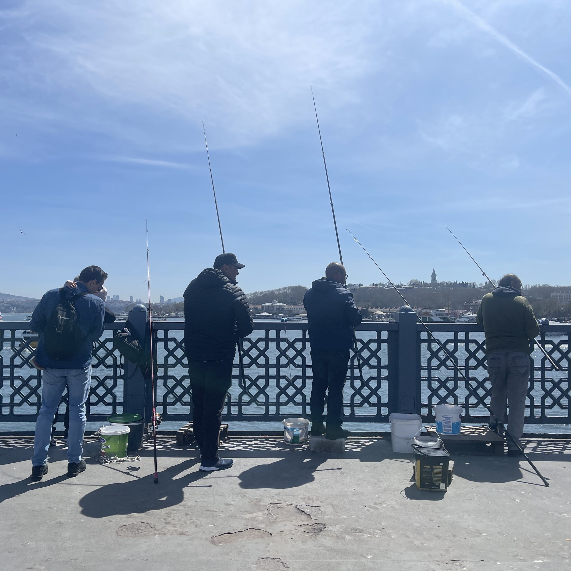 - Die Galatabrücke (oben Autos, Tram und Angler – unten Restaurants)