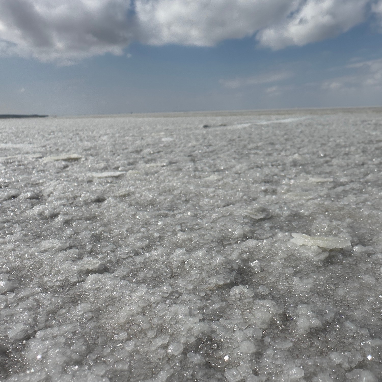 Mit 32,9% Salz ist dieser See einer salzhaltigsten Seen der Welt. Leider ist der See von einem starken Rückgang aufgrund der wenigen Niederschläge betroffen. Man müsste dringend eine bestimmte Bewässerungstechnik anwenden, um den See zu erhalten – was nicht erfolgt – sie bauen nur Salz ab. Lange wird das nicht mehr gut gehen, wir konnten genau sehen, wie weit der See schon zurückgegangen ist…..normalerweise sind im Sommer auch tausende von Flamingos anzutreffen, sie werden immer weniger und müssen sich einen neuen Brutplatz suchen.