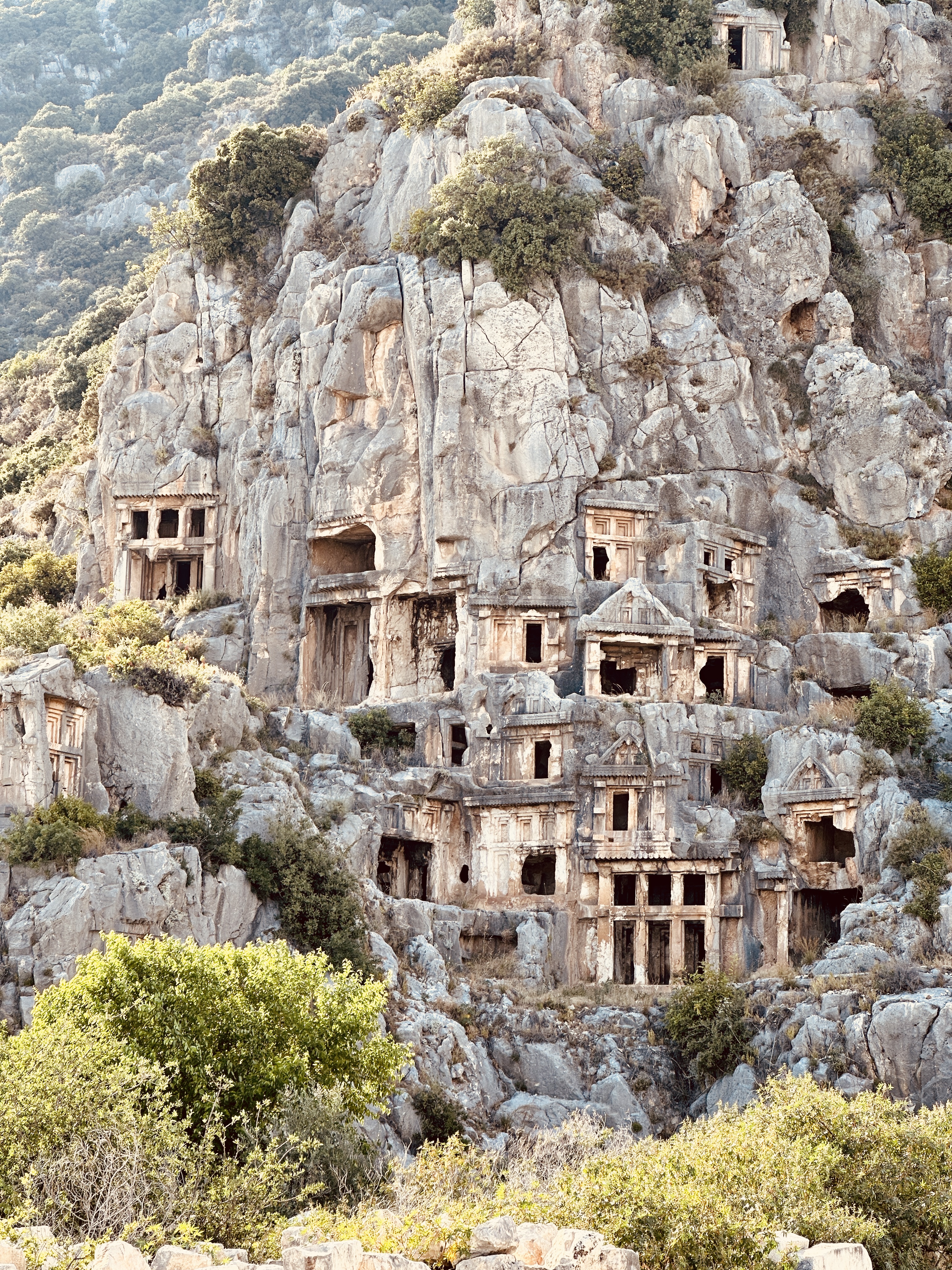 Hmm….ehrlich gesagt, weiß ich nicht so recht ob ich Myra wirklich erwähnen soll, weil wir uns einfach für den hohen Eintrittspreis mehr erwartet hatten und naja…. Wer weiß, vielleicht ist es ja für jemanden von Euch viel spannender als für uns. Also, Myra ist eine antike Stadt in der heutigen Stadt Demre. Bekannt für seine Akropolis und sein Theater. Myra wurde als eine der sechs führenden Städte im antiken Lykien angesehen und liegt auch auf dem Lykischem Weg (Fernwanderweg in der Türkei von über 509 km). Auf den Bilder sieht die „Stadt“ (leider) unheimlich imposant, groß und weitläufig aus – was vor Ort einfach nicht der Fall ist. Und doch zählt zum Beispiel das Amphitheater zu seiner Zeit als das größte in ganz Lykien. Das nächste Mal, versuchen wir so etwas einfach ohne Erwartungen zu besuchen -wer weiß, vielleicht hilft´s. Genau gegenüber von Myra gab es einen großen Parkplatz, wo wir eine ruhige Nacht verbracht haben