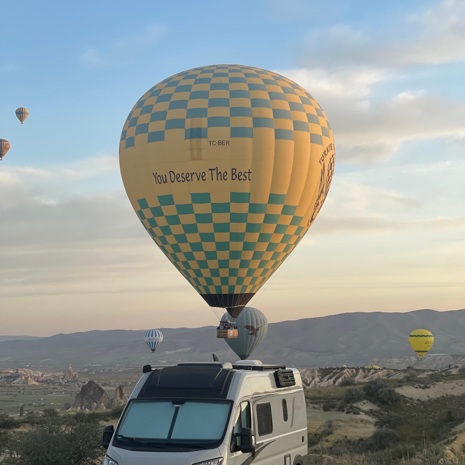 Chris und ich wollten dieses Spektakel unbedingt sehen – hunderte von Ballons steigen über uns in die Lüfte. Uns wurde das Love-Valley dafür empfohlen und wir sind happy, dass wir nicht von der Polizei wie ein paar andere vor uns verjagt wurden. Hier darf man nämlich nicht mit dem Bus übernachten. Wir schon. Um 5 Uhr morgens standen wir auf, ganz leise und mit Babyphone ging’s raus aus dem Bus und da waren sie schon – die Ballons. Pünktlich zum Sonnenaufgang starten sie, der Flug dauert ca. 60 Minuten.