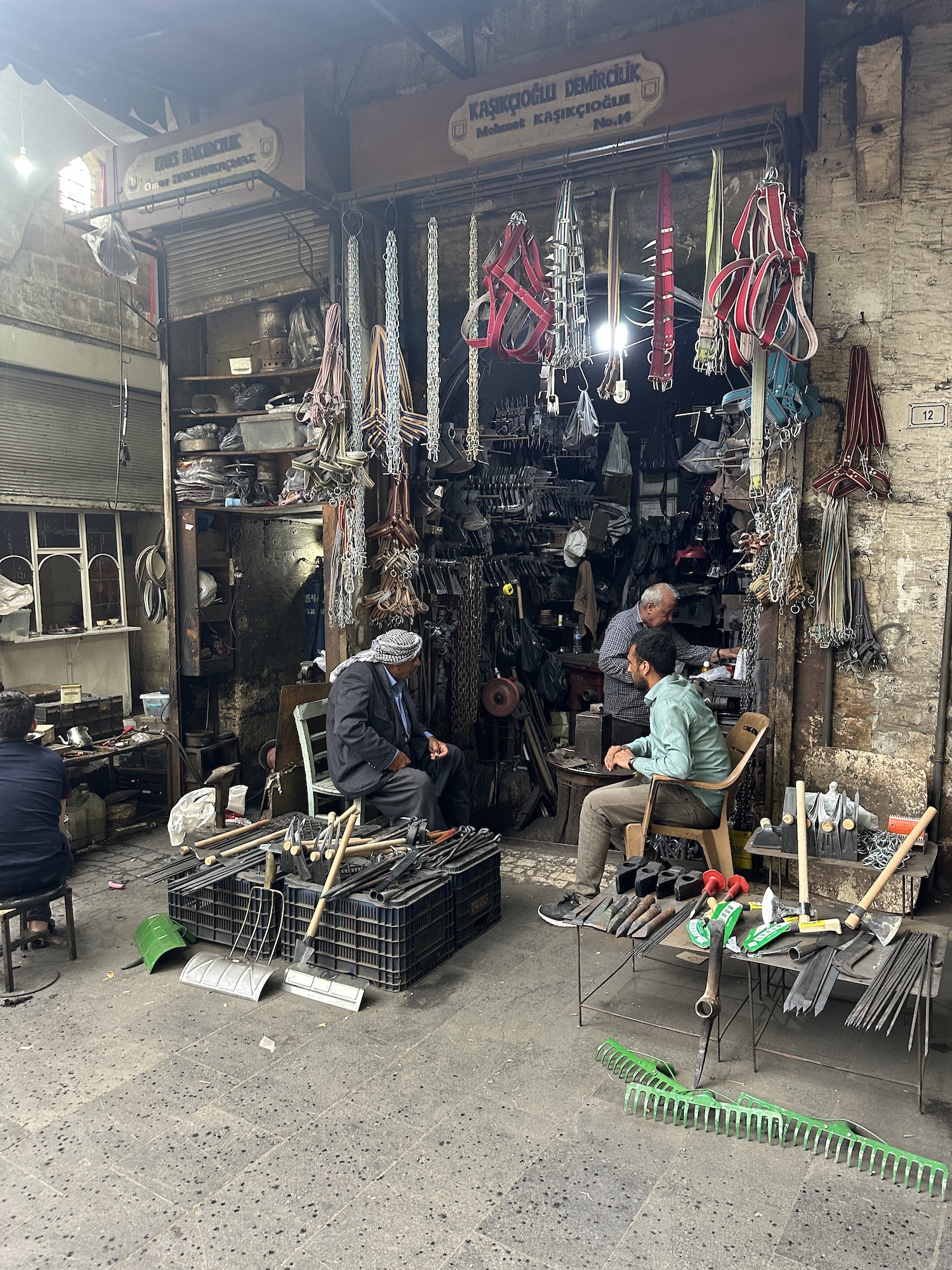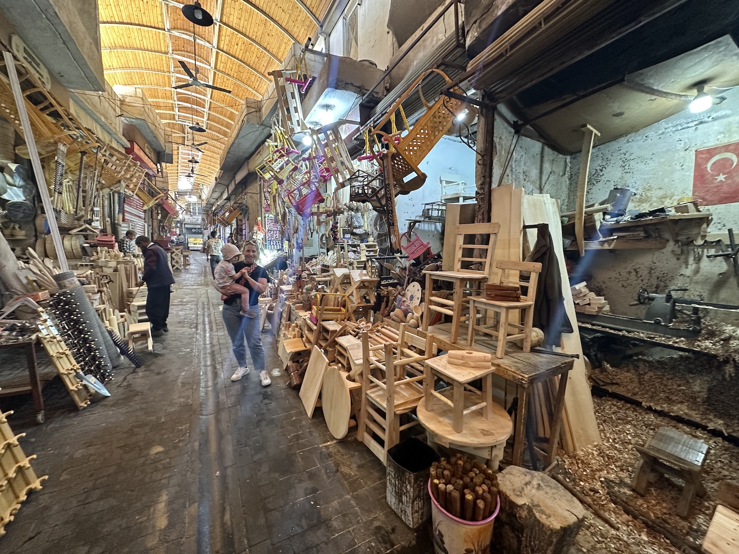 Den zweiten Tag haben wir uns den Bazar vorgenommen. Der Bazar ist so toll, weil hier wirklich alles mögliche noch in Handarbeit hergestellt wird. Man findet Holzmöbel, mehrere Schmieden, Schneiderein – einfach alles. Dazwischen Reihen sich Gemüse und Fleischhändler. Und wie soll es anders sein, kann man natürlich auch hier Kleidung und Schuhe kaufen. Wir haben den halben Tag an diesem Bazar verbracht und uns dort auch noch einen Chai und ein Simit (türkischer Sesamring) gekauft.