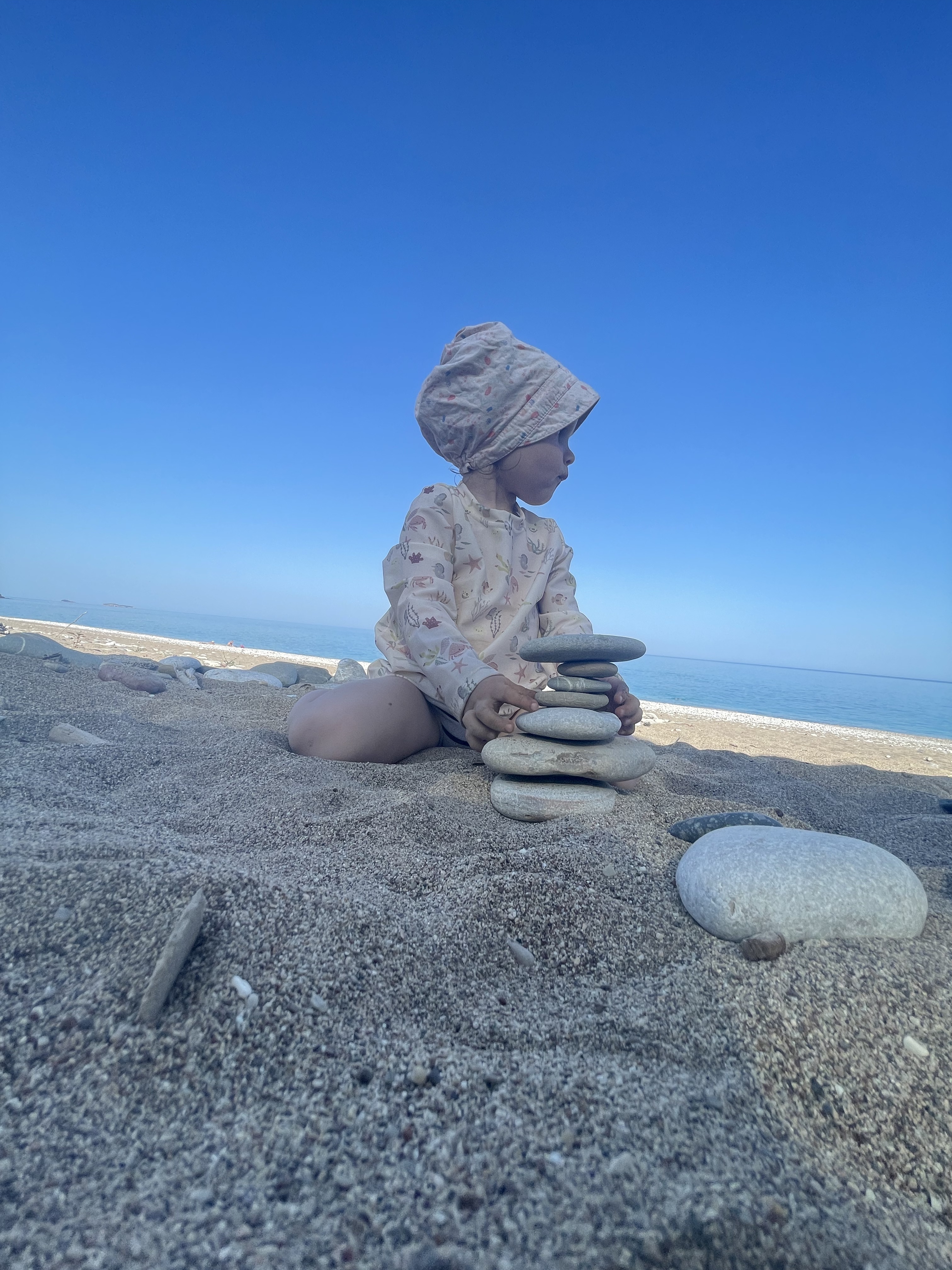 Tagsüber waren wir an einem kleinen Strand und Fleur konnte schön im Sand spielen.