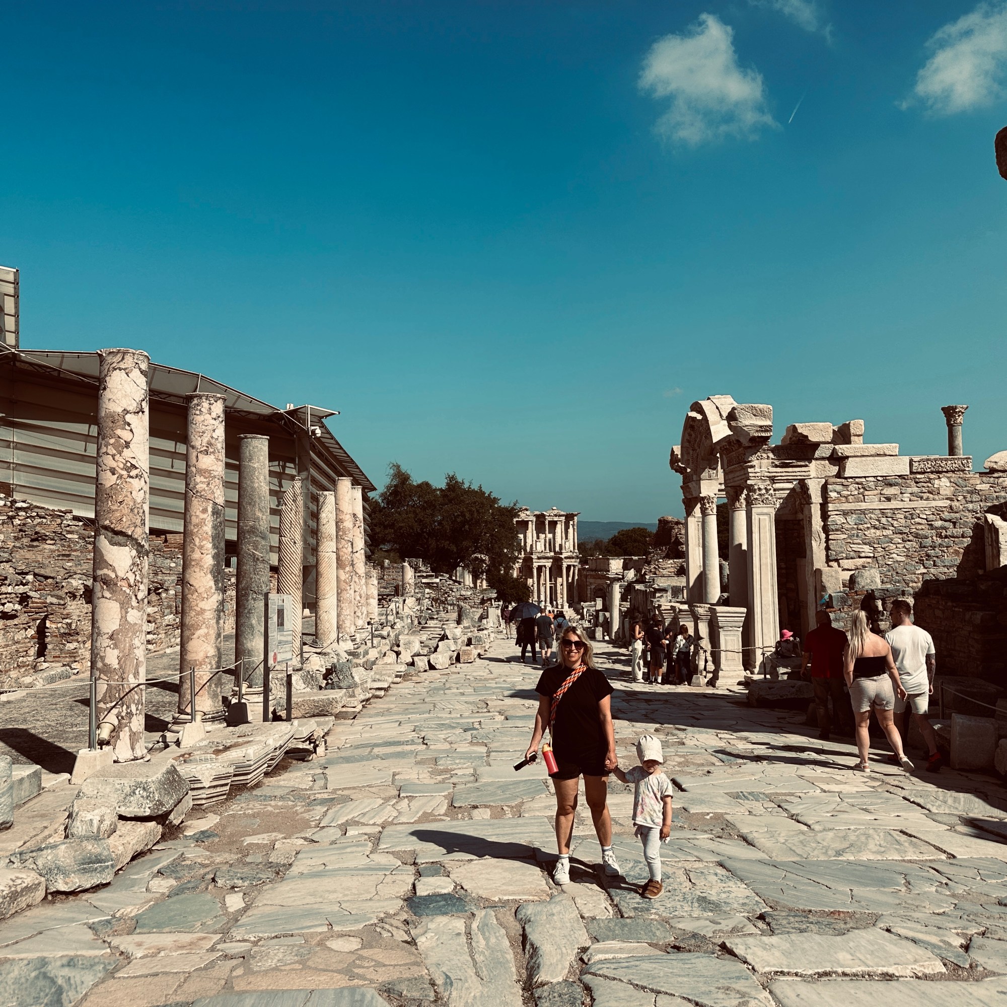 Unsere Tage in der Türkei sind bald vorbei – bald waren wir fast zwei Monate hier. Für uns gehts jetzt weiter von Strand zu Strand. Wir waren an einem weiteren Schildkröten Strand. Dort befindet sich die einzigste Auffangstation für Schildkröten in der Türkei – eine tolle Arbeit leisten sie dort. Entdeckt haben wir außerdem wunderschöne Buchten. Außer Sandspielen, Kaffee trinken und absolutes chillen passierte nicht sehr viel bei uns. Wir setzten mit der Fähre von Datca nach Bodrum über und bekamen dort spontan Besuch von der „buckligen Verwandtschaft“. Nein, wir haben uns sehr gefreut, das Oma Elfi, Opa Alois und Gabi uns besucht haben und verbrachten eine Woche zusammen im Hotel, in der Nähe von Bodrum – inkl. Schaumparty. Von Bodrum fuhren wir zur antiken Stadt Ephesos, die mit dem Tempel der Artemis eines der Sieben Weltwunder beherbergte. Ephesos wurde außerdem, 2015 in die Liste der UNSECO Kulturwelterbe aufgenommen. Gott sei Dank, waren wir sehr früh vor Ort, denn bereits um 10 Uhr konnte man sich vor lauter Touri-Führungen kaum mehr retten.